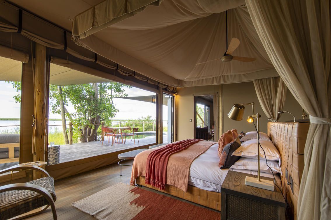 The camp's opulent villas, each with its private deck overlooking the floodplains, offer a secluded escape into nature's embrace. Guests can indulge in spa treatments under the African sky, explore the delta's intricate channels by mokoro, or embark on wildlife drives that reveal the delta's diverse inhabitants in their natural splendor. As the sun sets, the air fills with the calls of nocturnal creatures, a reminder of the wild heart of Botswana that beats just beyond the comfort of your luxurious retreat.